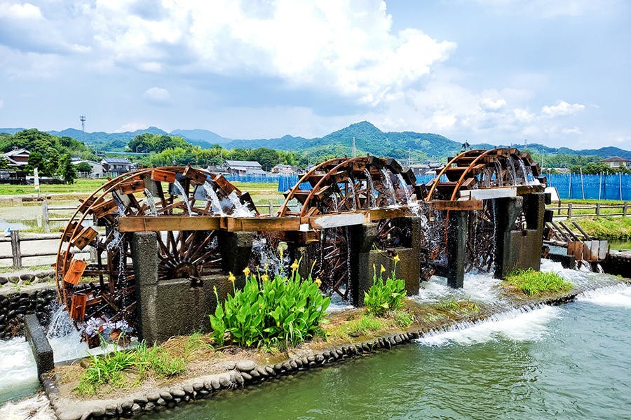 くるくるまわる朝倉の三連水車 水の豊かさから生まれる美味しいお米