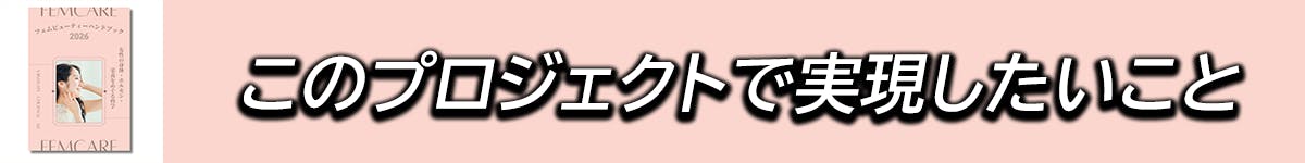 私がこのプロジェクトで実現したいのは、「フェムビューティー」という新しい価値観を、医師監修の信頼性とともに、性別や世代を超えて社会に届けること」です。