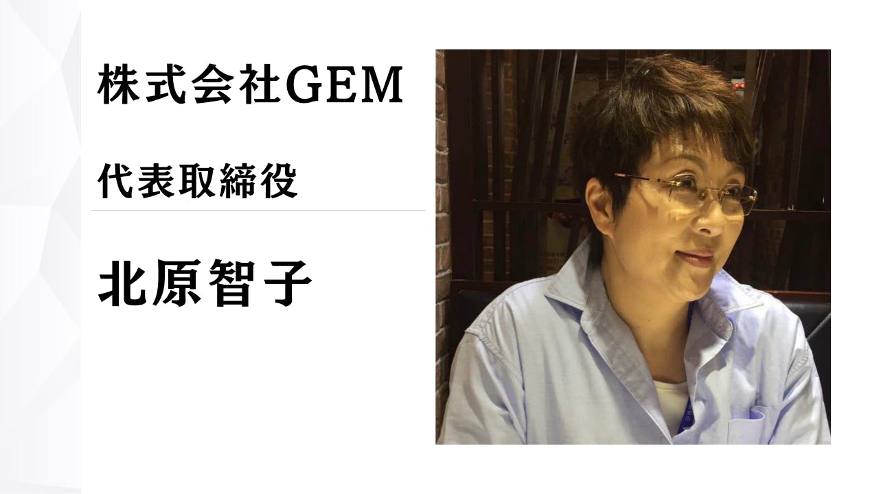 皆さま、はじめまして。株式会社GEM代表の北原智子と申します。
