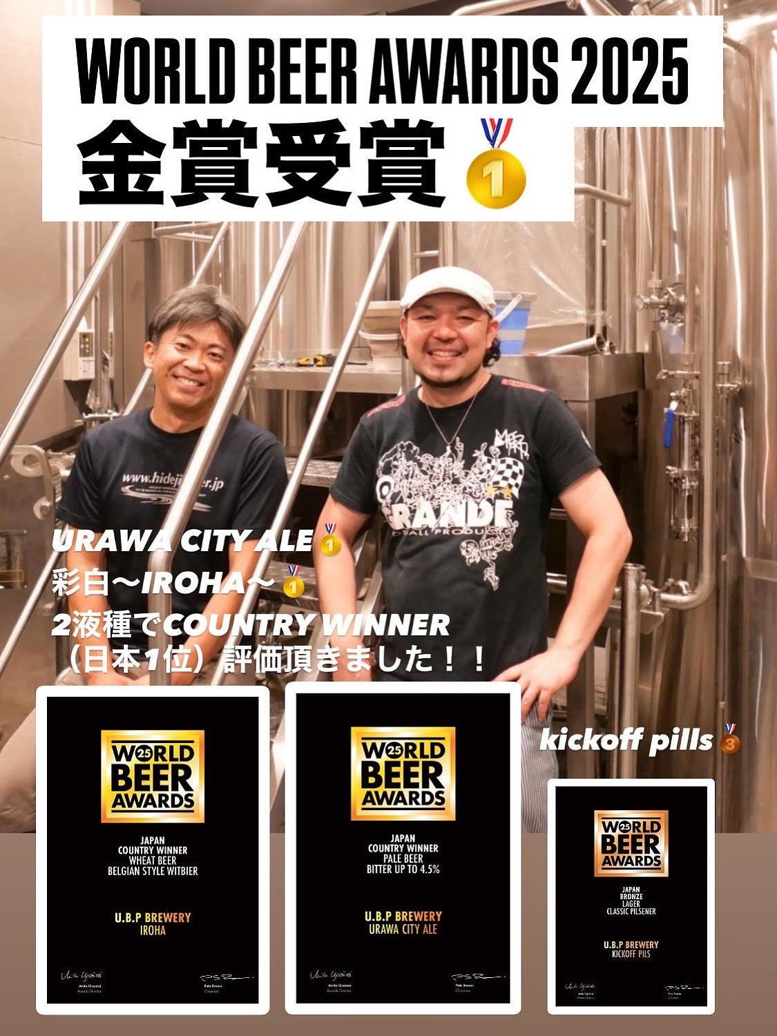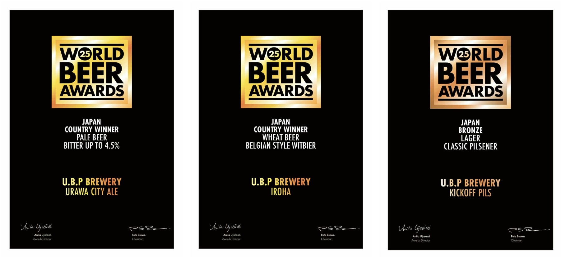 2025年にはU.B.P BREWERYのビールがイギリスで開催されたビールの世界大会「WORLD BEER AWARDS 2025」では2液種で金賞を受賞。またJAPAN COUNTRY WINNER(日本一)の評価と共に世界的に高い評価を頂きました。