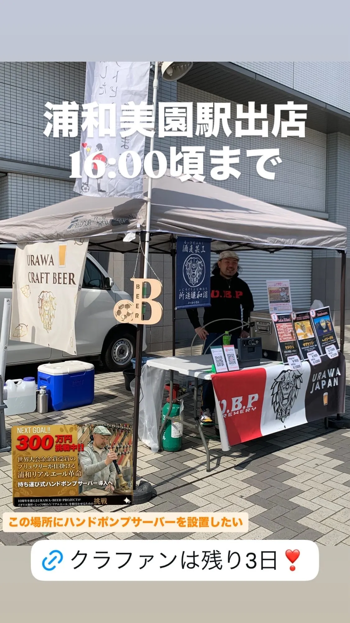 【感謝】2月15日〜3月25日23:59までの期間、ハンドポンプサーバー導入プロジェクトにお付き合い頂きましてありがとうございました。「フットボール×ビールの新しいカルチャーを浦和から世界へ」クラウドファンディングは3月3日に初期設定クリアネクストゴールに向かって最後までご支援などありがとうございました。初期ゴールのBEER HUNTING URAWA導入のハンドポンプサーバーは4月2日に日本に到着予定。4日に現物が店舗着、この日に業者に現物確認頂き、9日-10日に設置工事、11日にクラファンお披露目コースのお披露目会のスケジュールで動いております。ハンドポンプサーバーの輸入が予定より遅れてギリギリのタイミングですが不備のないことを祈る限り。皆様、BEER HUNTING URAWAでのリアルエール提供を楽しみにお待ち下さい。また、ネクストゴールまでは届きませんでしたが最後まで背中を押して頂きありがとうございました。持ち運び式ハンドポンプサーバーに関しては現在、補助金などを駆使して導入出来ないかを探っております。時間は掛かるかもですが実現出来るよう動いていきます。他にも今回の支援金を使用して皆様に楽しんで頂けることをやっていきたいと思いますので、今後ともBEER HUNTING URAWA、BEERNOVA URAWA、U.B.P BREWERYをよろしくお願い致します。株式会社URAWA・BEER・PROJECT代表 小林 健太(かまくら)