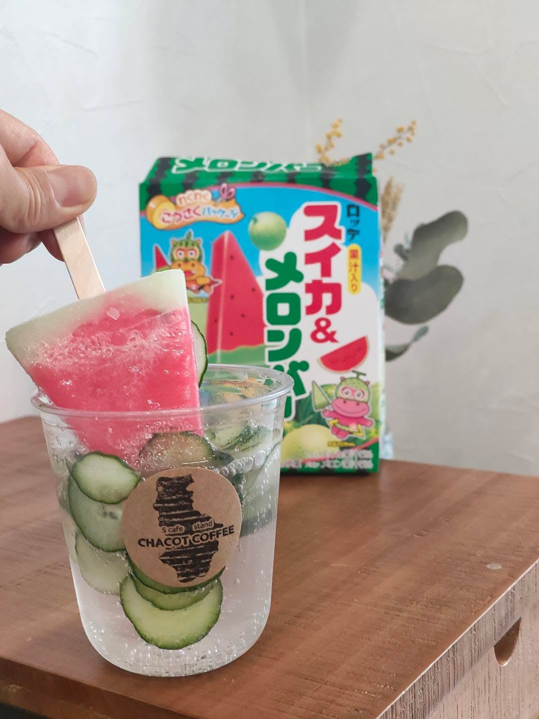 スイカバーにもっとリアルなスイカ感を求め、キュウリの青臭さでスイカの皮っぽさをトッピング。嘘のようですがチャココーヒーさんもお墨付きな仕上がりとなりました!