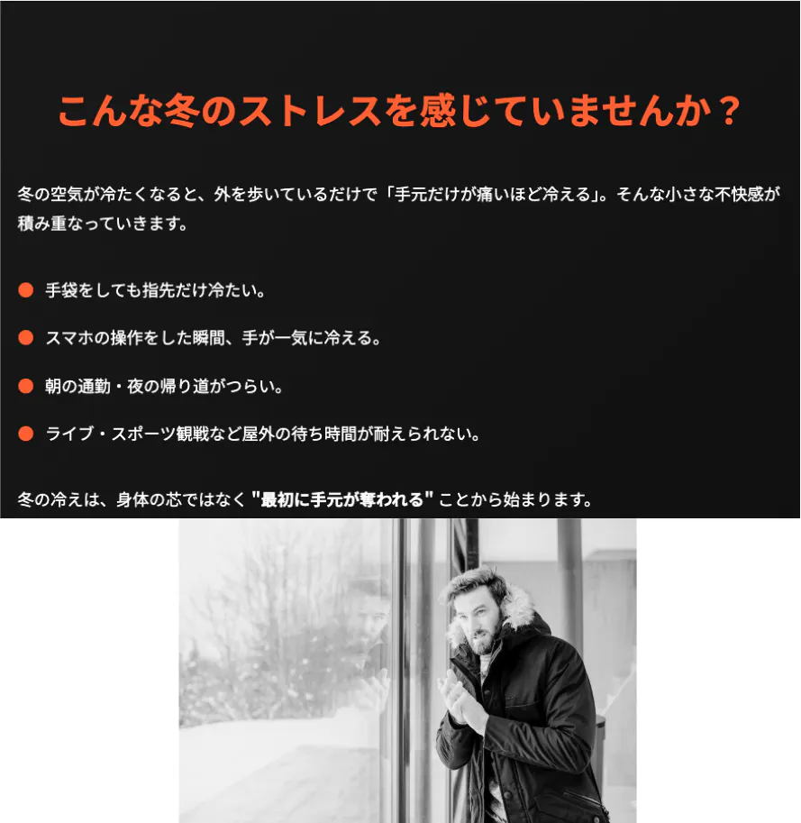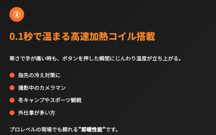 冬は「待てない季節」です。寒さで手が痛い瞬間に、電源を入れても数十秒寒さに耐え続ける…これはストレスでしかありません。