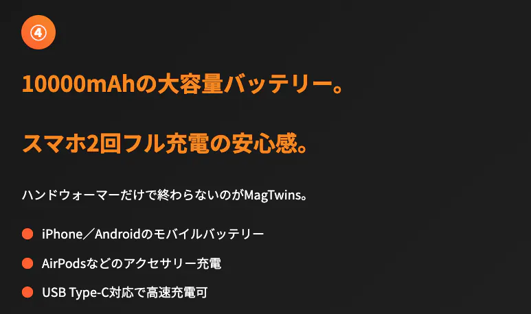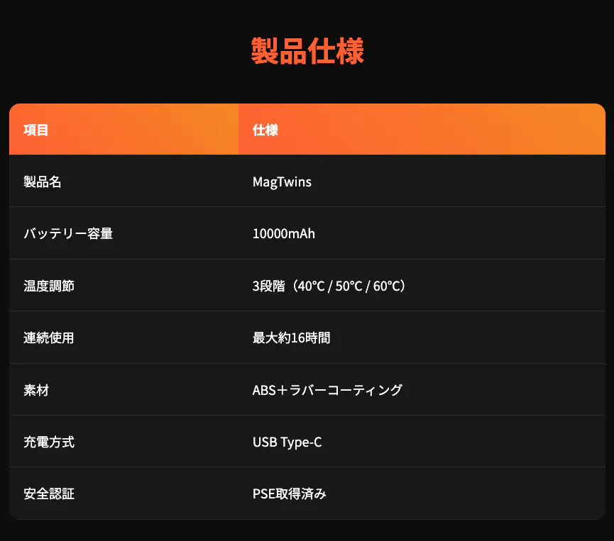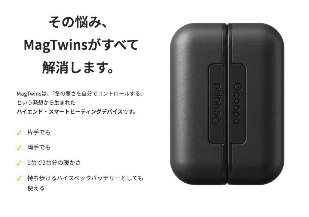 MagTwinsは、“温かさ + 電源確保” を同時に持ち歩くデバイスです。