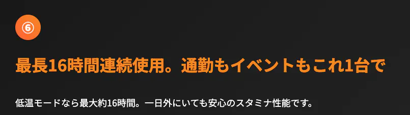 ● 高温(約60℃):極寒・屋外イベント・夜間の待機に