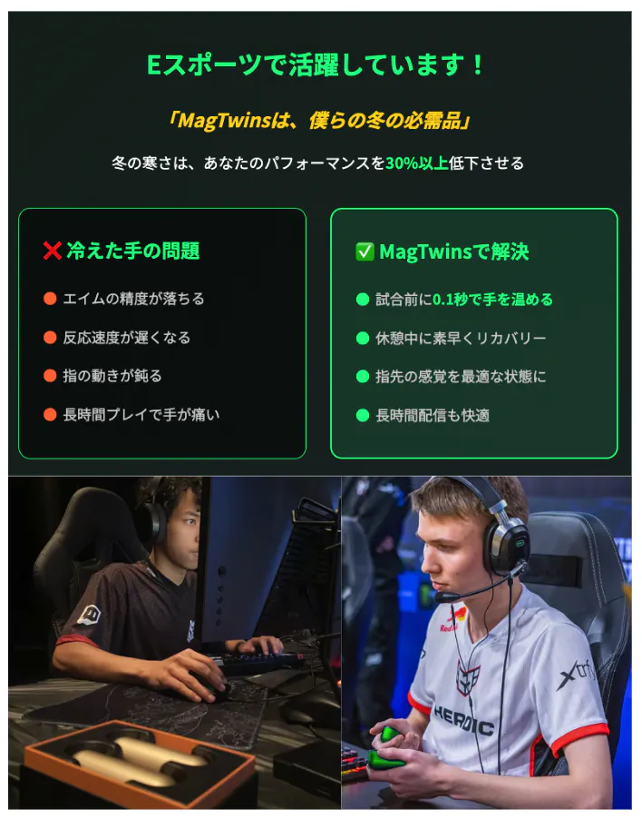 MagTwinsは、この根本的な問題に向き合い、“両手を同時に温める” という体験そのものを再設計。