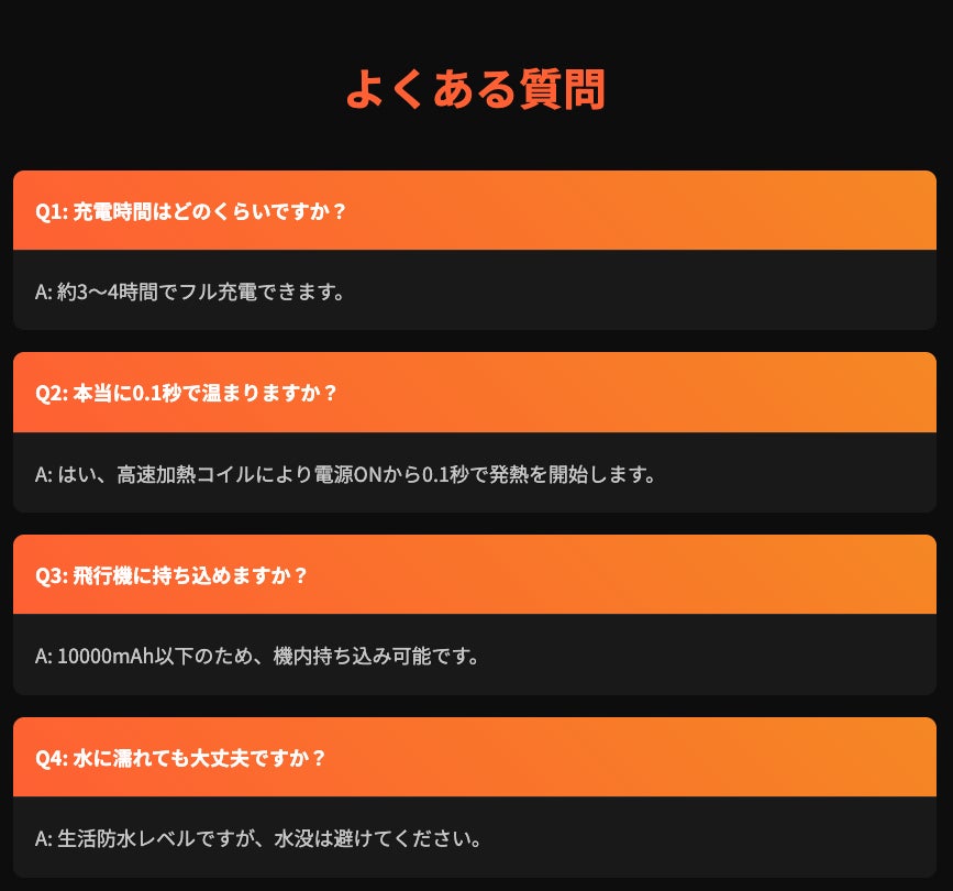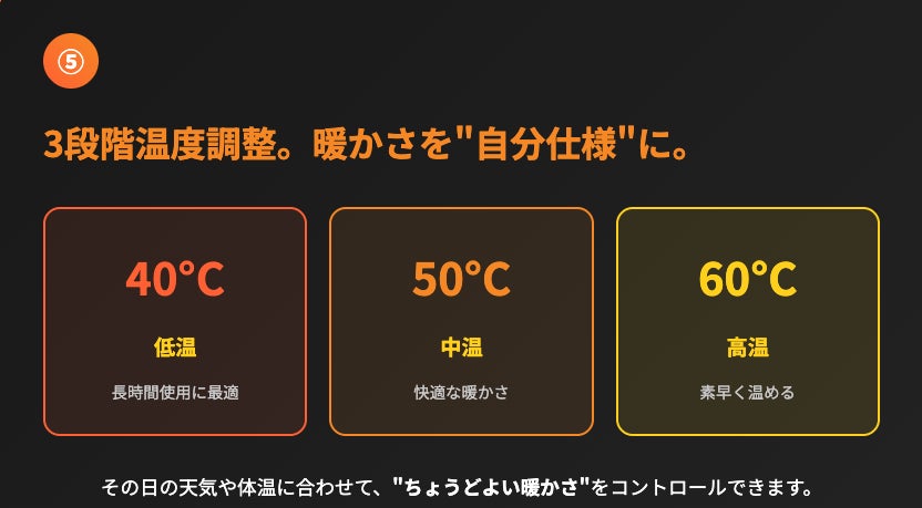● 高温(約60℃):極寒・屋外イベント・夜間の待機に