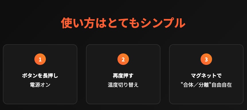 MagTwinsの最大の特徴は、1台のデバイスがマグネットで “2つの独立ヒーター” になること。
