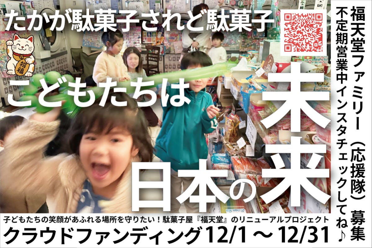 子どもの未来は日本の未来! 企業連携型駄菓子屋「福天堂」が日本を明るく照らす!