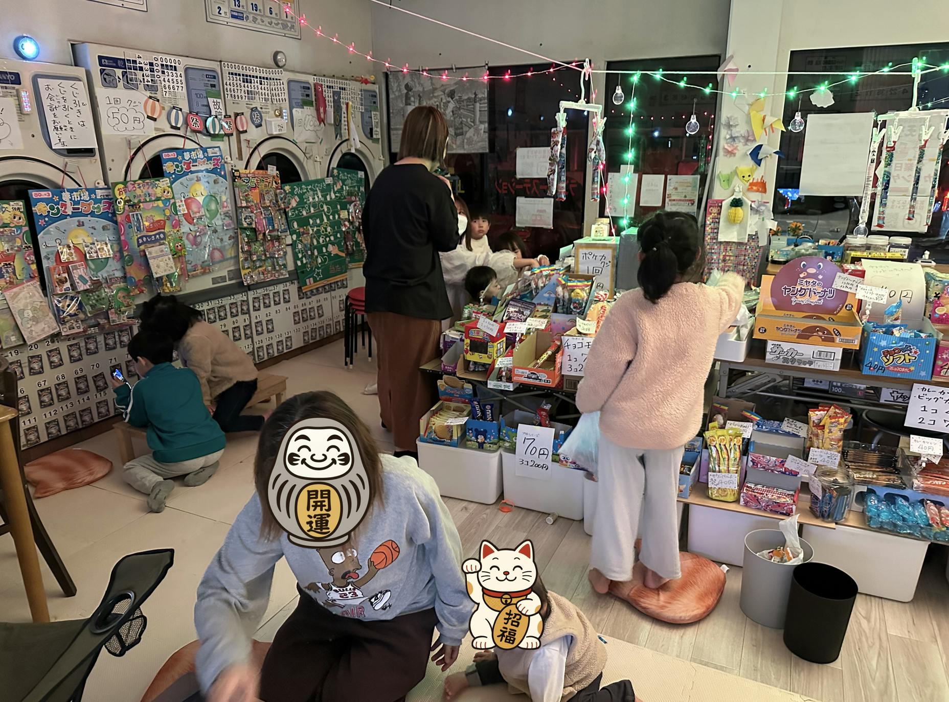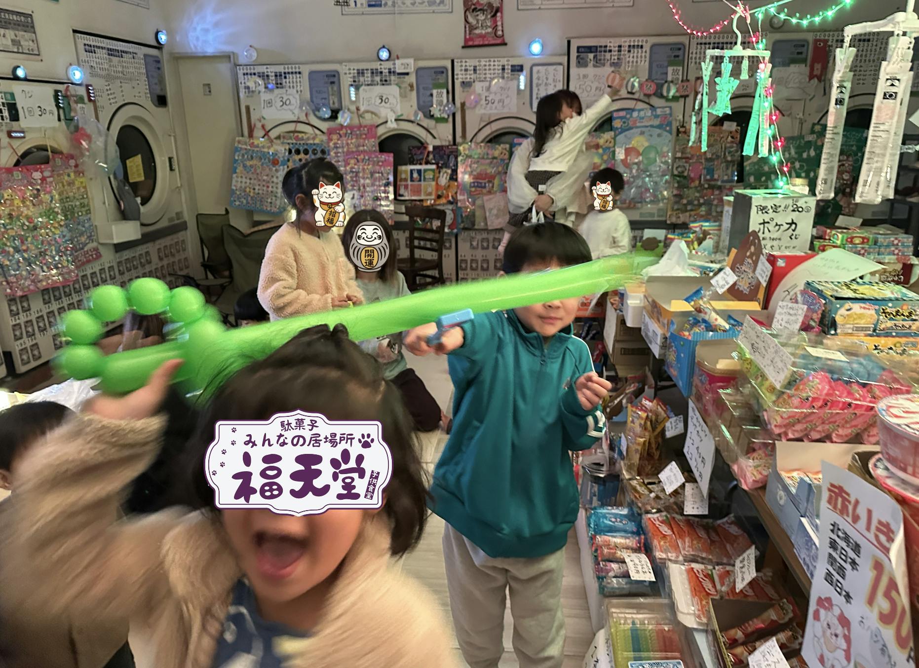 そんなとき、地域の駄菓子屋がなくなったことを知ったり、ちょうど祖父のコインランドリーを使わせてもらえる機会に出会ったりして、今こそ地域の子どもたちのために何かできることはないか、と考え、子どもたちが気軽に集まれる「駄菓子屋・福天堂」をオープンするに至りました。