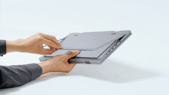CrowView Yogaの特長のひとつが、360度回転可能なスクリーンと縦型の折りたたみデザインです。画面はフラットに開いたり、縦置きにしたり、プレゼンテーション用に反転したりと、さまざまなスタイルで使用可能です。