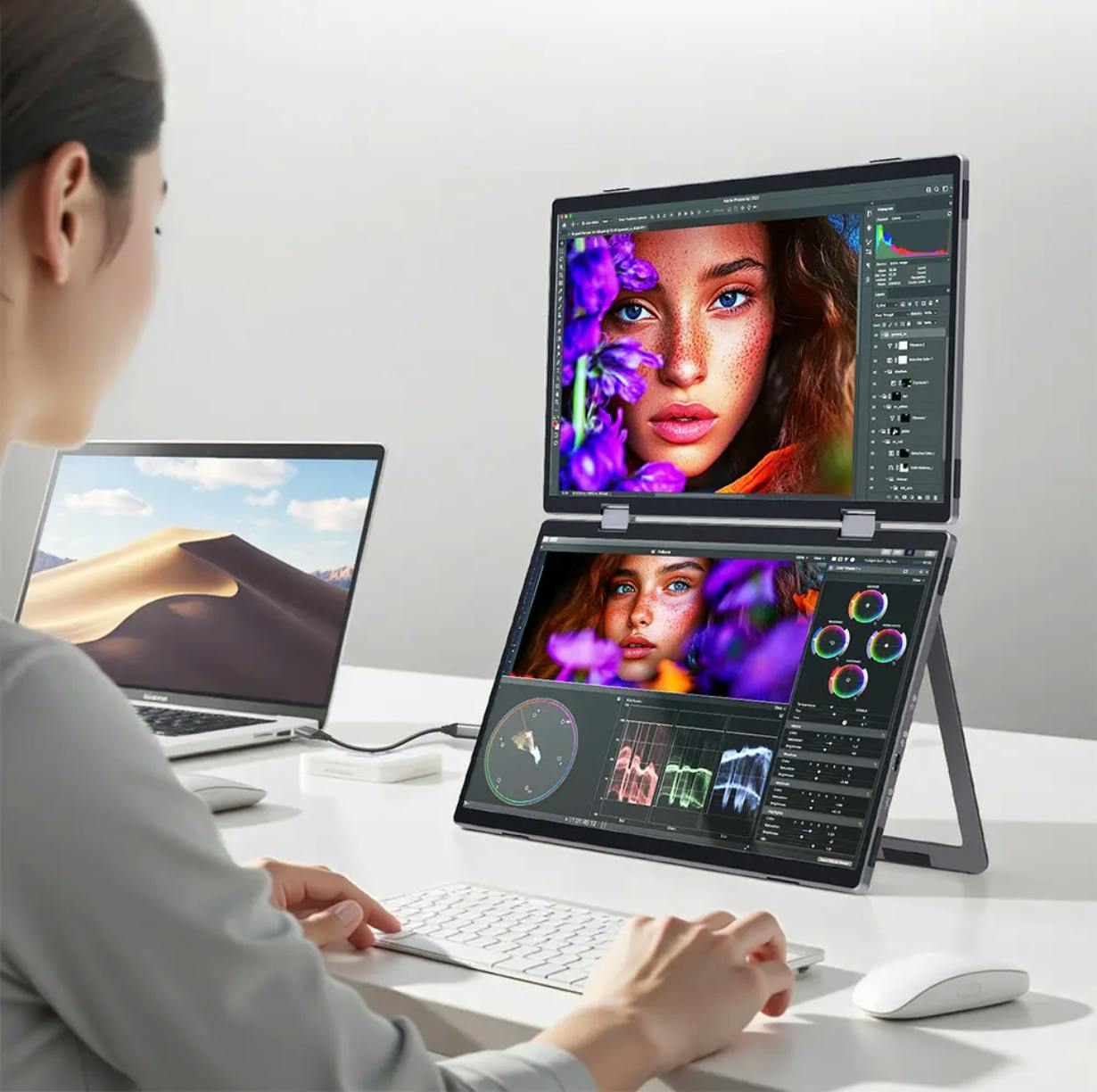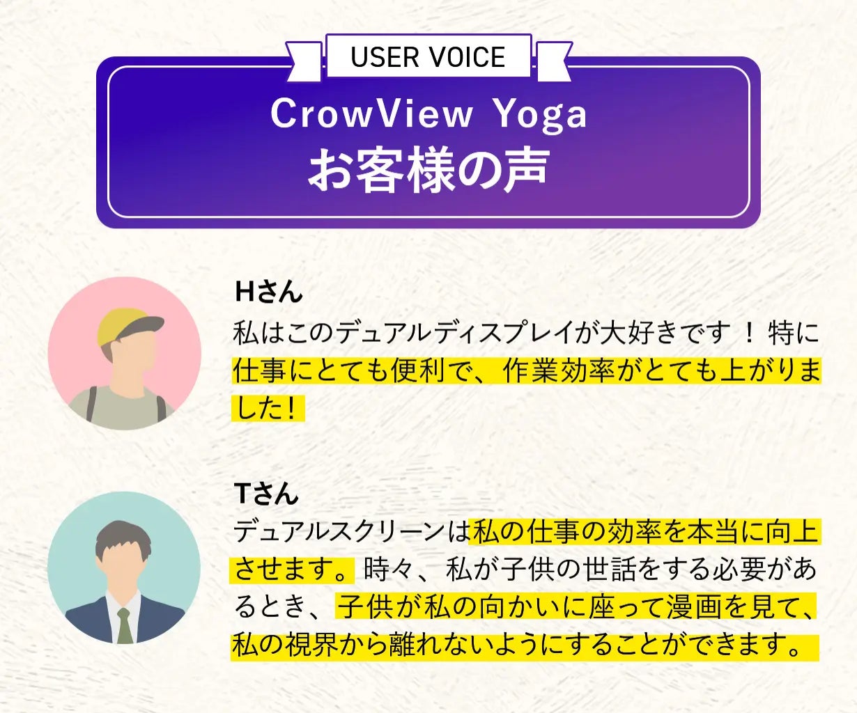 360度折りたたみ可能なデザインと2画面構成により、どこでもデスクトップ並みの作業効率を実現します。ここでは、CrowView Yogaがモバイルワークやクリエイティブな作業に最適な理由をご紹介します。