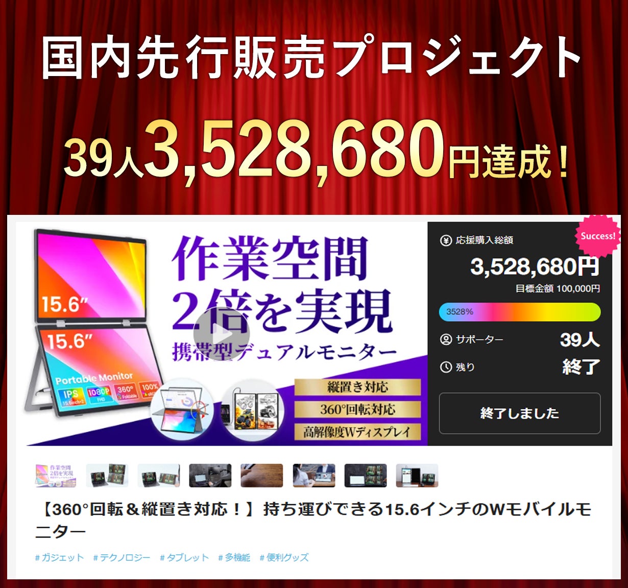 ※想定を上回る皆様から支援を頂き、量産体制を更に充実させることができた場合、一般販売価格が予定価格を下回る可能性がございます。