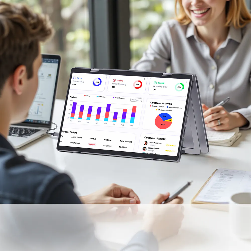 CrowView Yogaは、柔軟に開閉できるため、さまざまな作業モードに簡単に切り替えることができます。特に、2枚の画面を同時に使用することで、ウィンドウやアプリケーションの切り替えにかかる時間を大幅に削減し、作業効率を向上させます。これは、グラフィックデザインやプログラミングなど、複数のデータやドキュメントを同時に扱う必要がある人々にとって非常に重要なポイントです。
