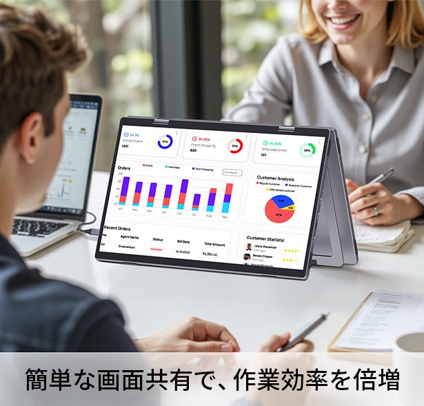 会議室に限らず、カフェや出張先など、どこでも資料やプレゼンを共有できます。持ち運びが便利で、どこでも快適に打ち合わせができます。