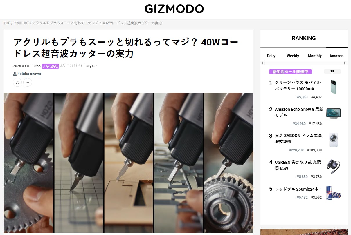 3月1日、GIZMODOで「HOZO NeoBlade」を紹介して頂きました。