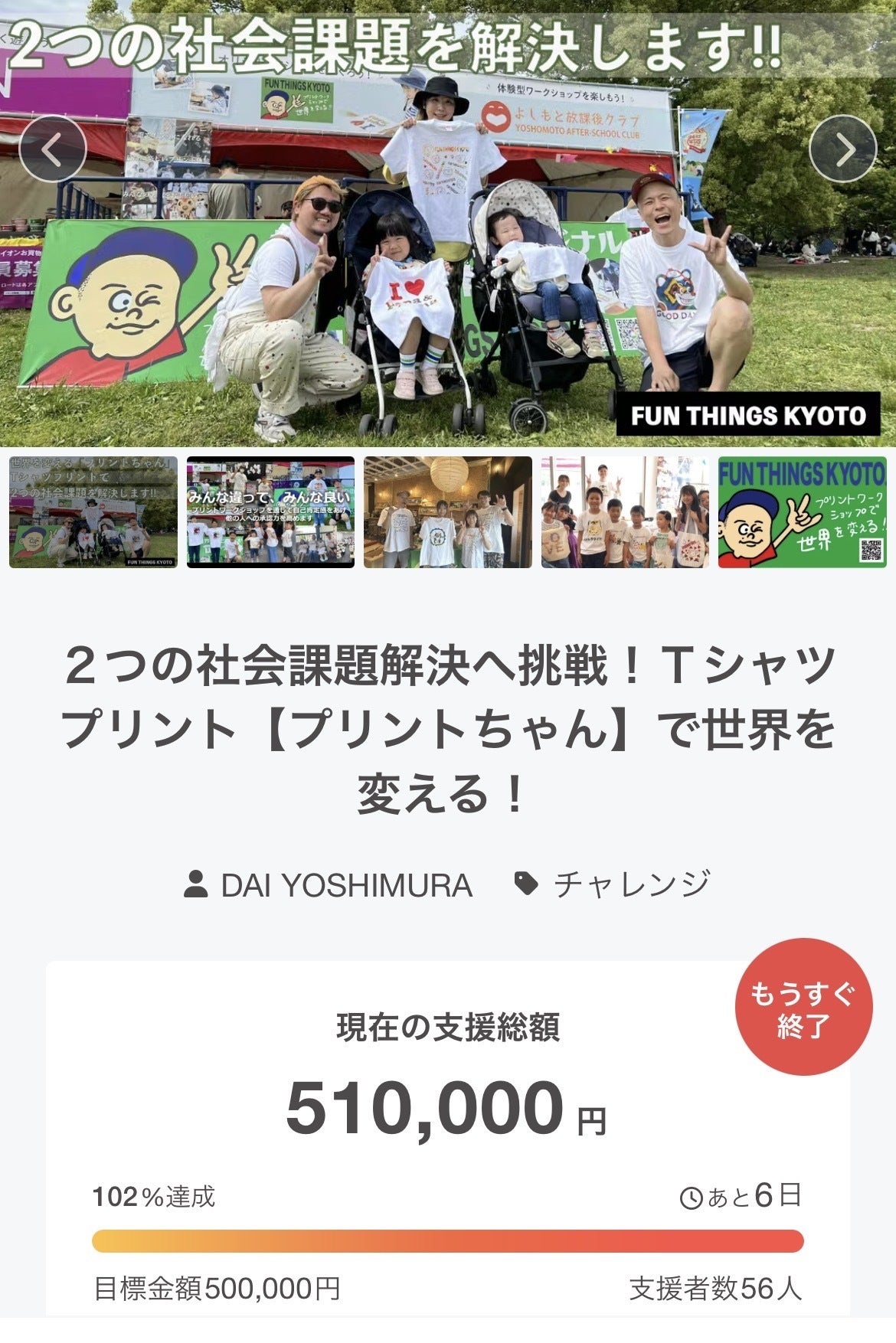こんばんは!クラウドファンディング45日目2026年1月29日の夜です残り3日を切りました本日は新しく支援してくださる方が居られ計61名の方からご支援いただき目標の110%達成となっています。いよいよ週末の土曜日でクラウドファンディング期間が終わりとなりリターン品の作成準備へと移ります。次の展開に向けた歩み考えている中で今日は奥さんとの会話から大きなアドバイスをいただきました。僕の全てを知ってくれている中で、今までは僕の想いを最大限に尊重してくれる後ろからのサポートをしてくれていましたが、未来を作るアプローチの中で新しい取り組み提案をもらえた事がポジティブに感じれました!これからの新しい取り組みとして、奥さんには今までと違う視座で関わってもらえることは、未来の結果が変わる事に繋がります課題も懸念も楽しみながらコンフォートゾーンを抜けていきます!家族の存在、みなさんの1人1人の支援のお気持ちが61人もの大きなご支援となり僕が前に進む原動力となっています。いつも活動報告を見ていただいている皆様、支援をいただいた皆様ありがとうございます!これからも私たちのプリントワークショップと共によろしくお願いします!