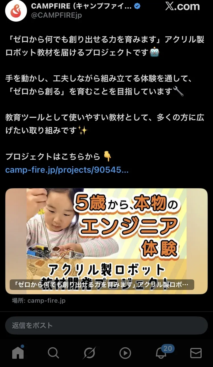 CAMPFIRE公式Xのポストはこちら