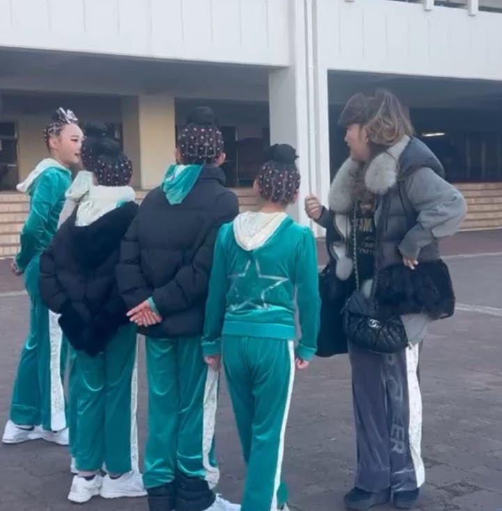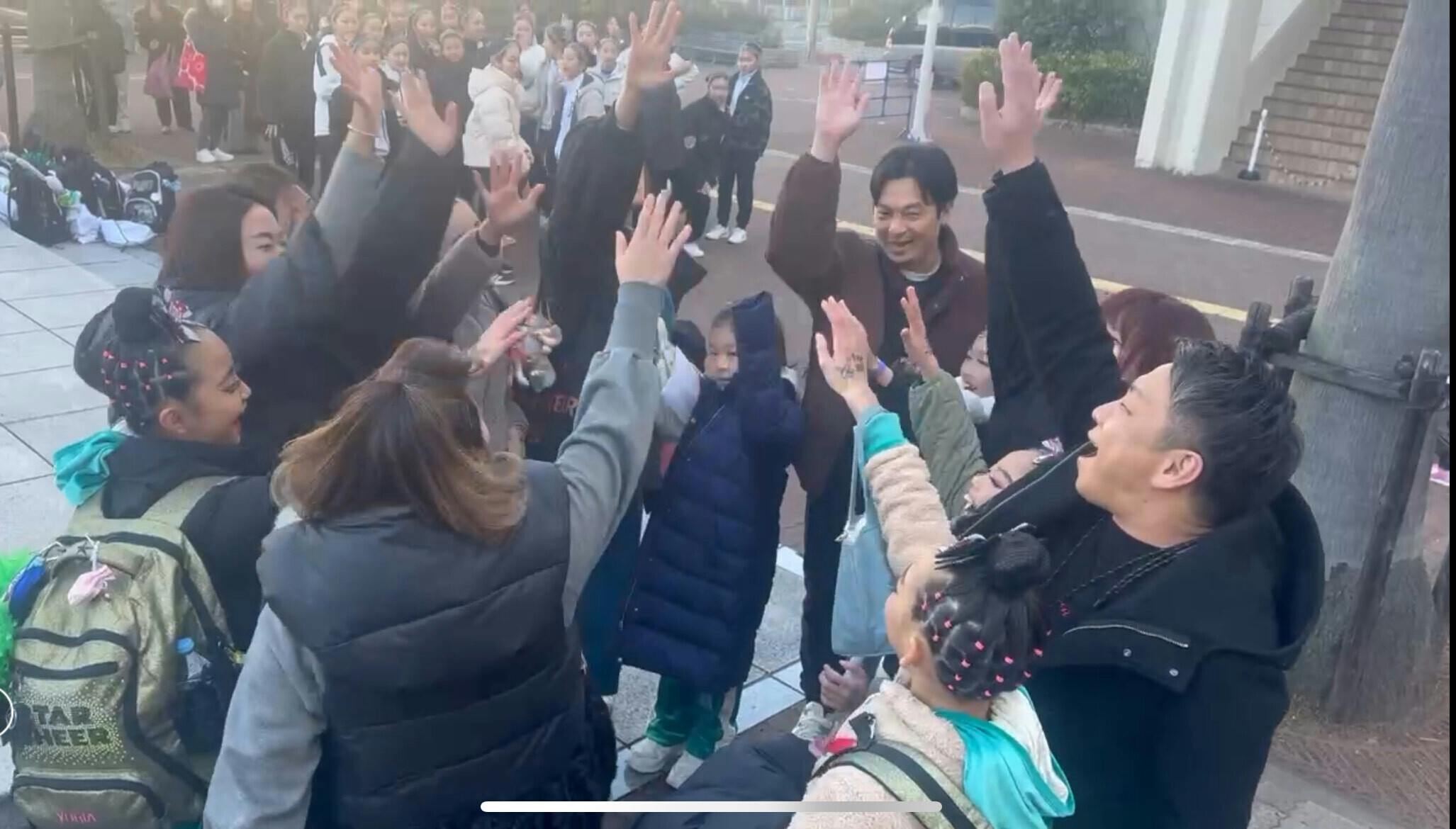 先生、パパ、ママ、妹達と気合いの円陣!