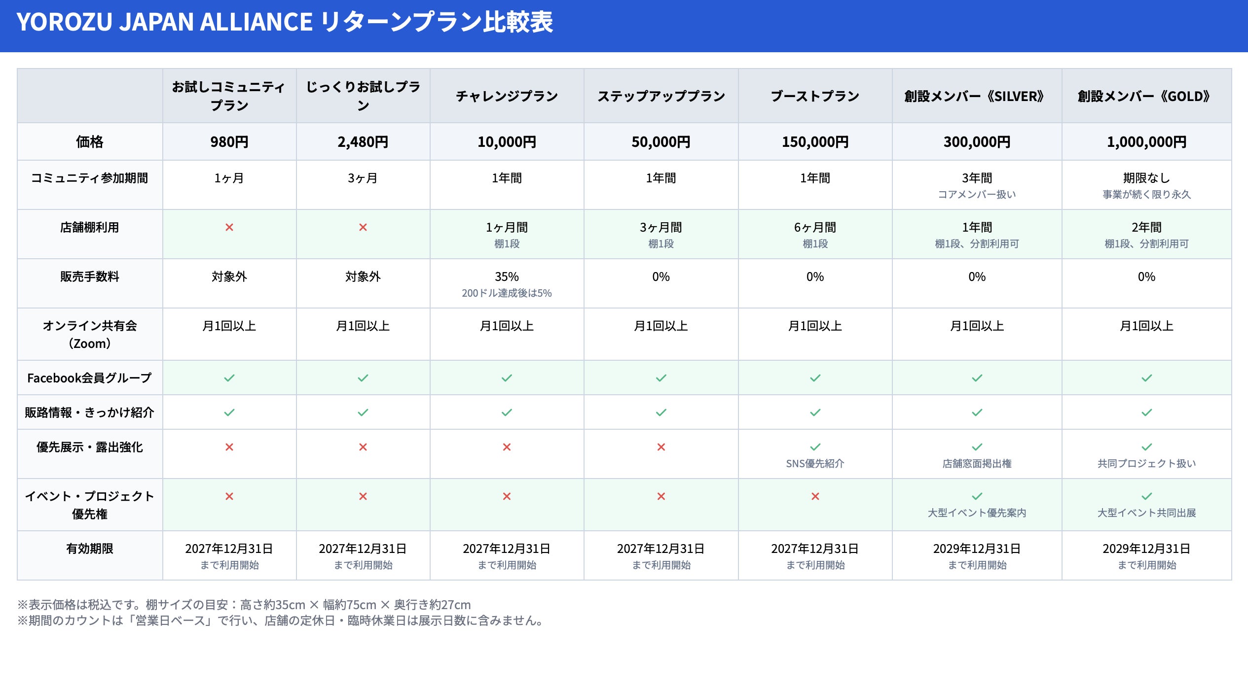 YOROZU JAPAN ALLIANCE は、情報交換だけでなく、「実際にアメリカに出ていくための実務部分」も、会員向けオプションとしてサポートしていきます。