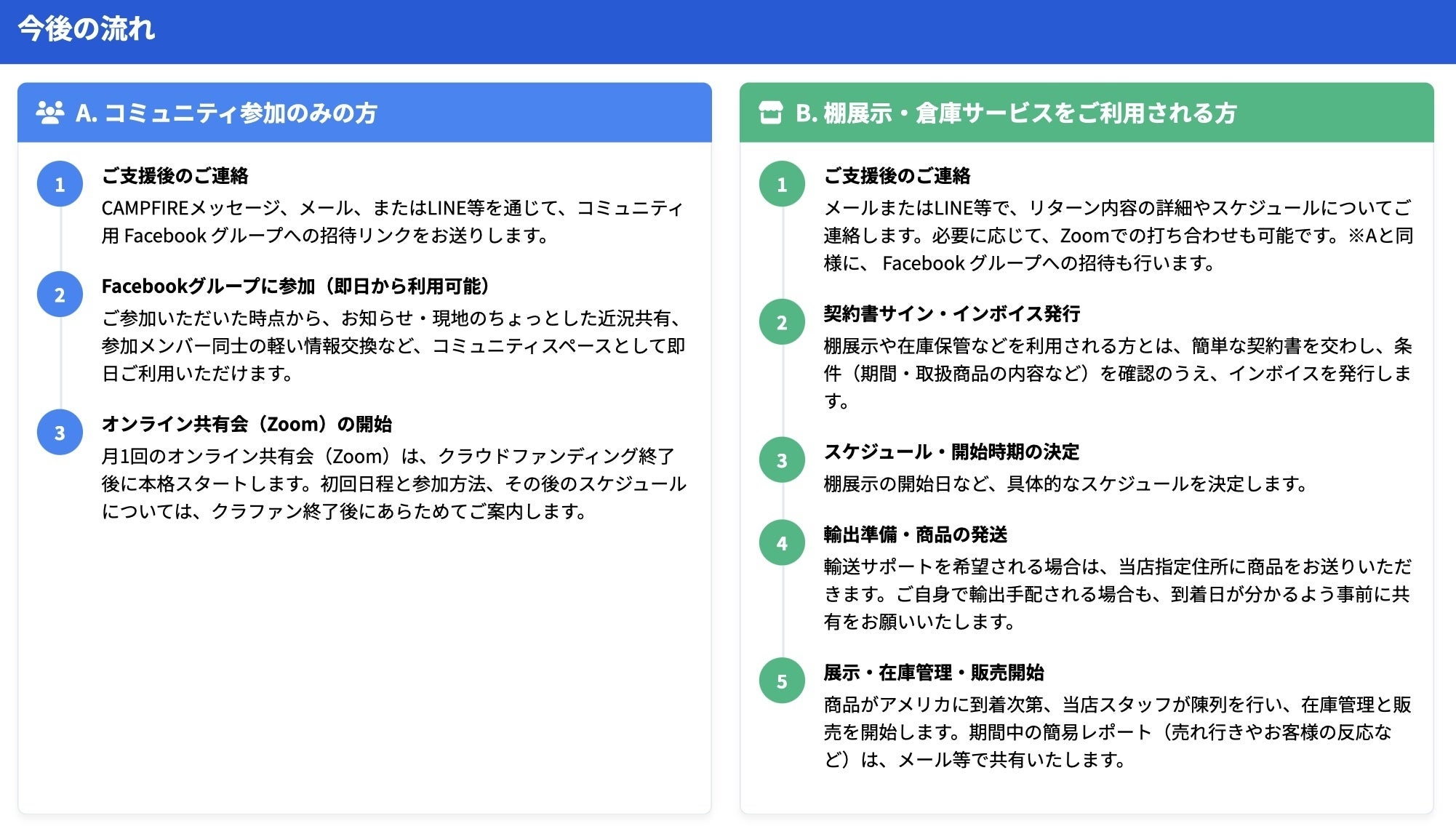 という方には、ニューポートビーチの実店舗での棚展示・販売や、EC倉庫・発送代行などを、コミュニティ会員向けのオプションとしてご用意します。