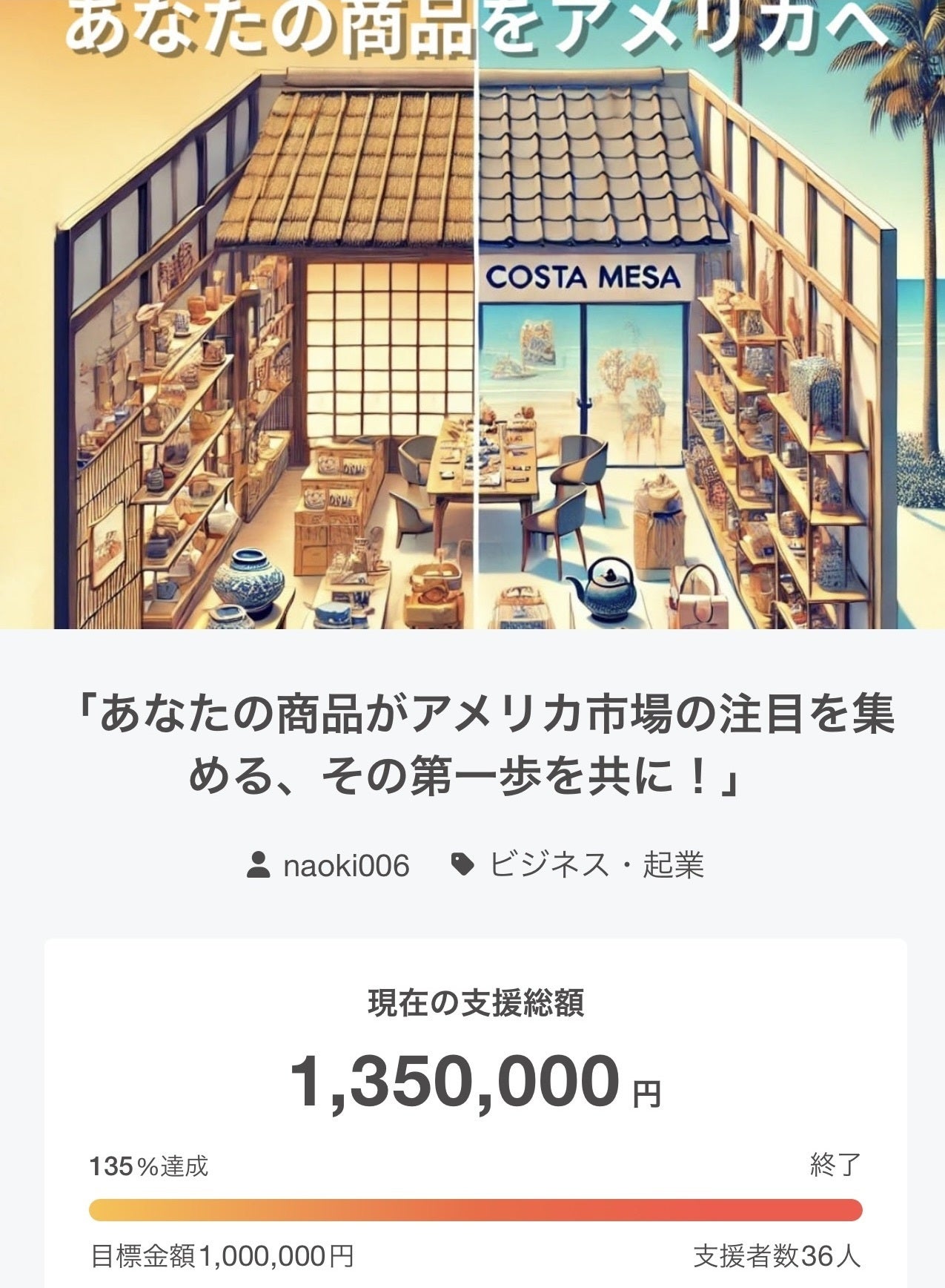 その結果、2ヶ月で約135万円のご支援をいただき、ニューポートビーチに実店舗をオープンするところまで辿り着くことができました。