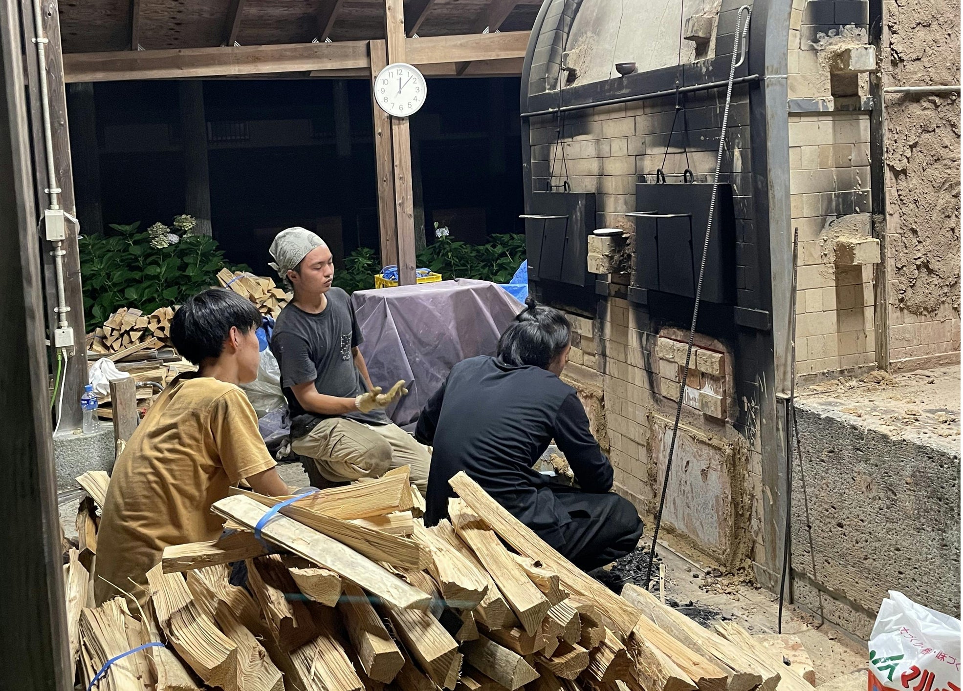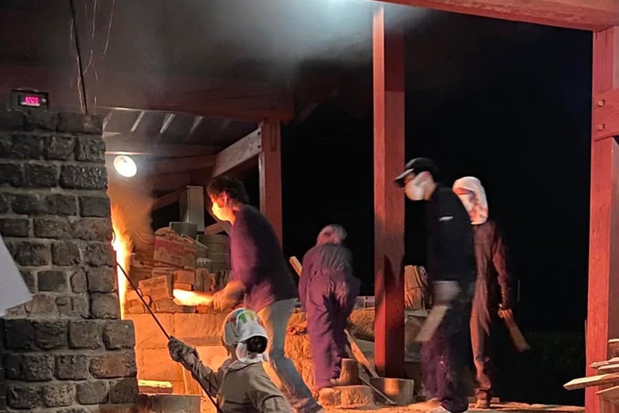 若手の陶芸家や教え子との焼成の様子