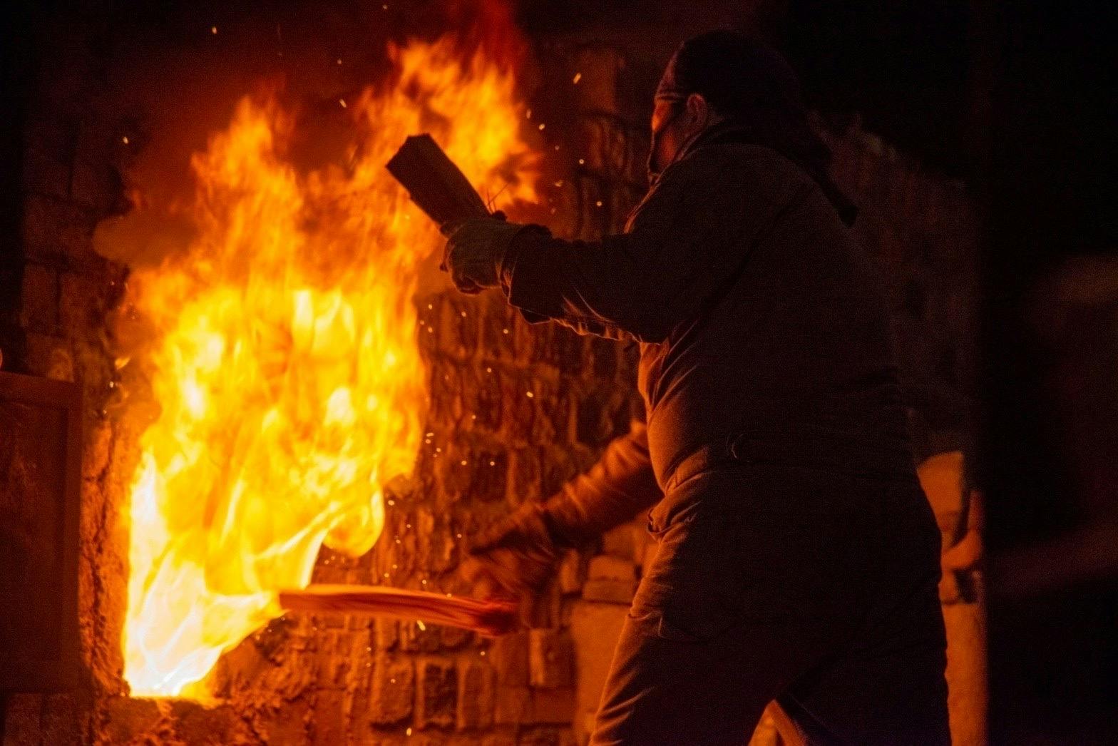 若手の陶芸家や教え子との焼成の様子