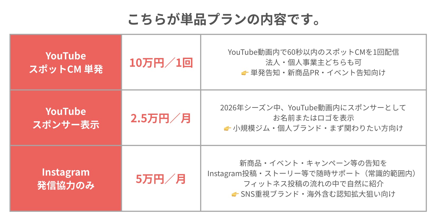 これらのスポンサーリターンは、単なる広告枠ではなく、フィットネス文化づくりへの参加を想定しています。メディアとしての発信力を活かし、フィットネスの文脈の中でブランドを伝えていく。それが今回のスポンサー設計の考え方です。