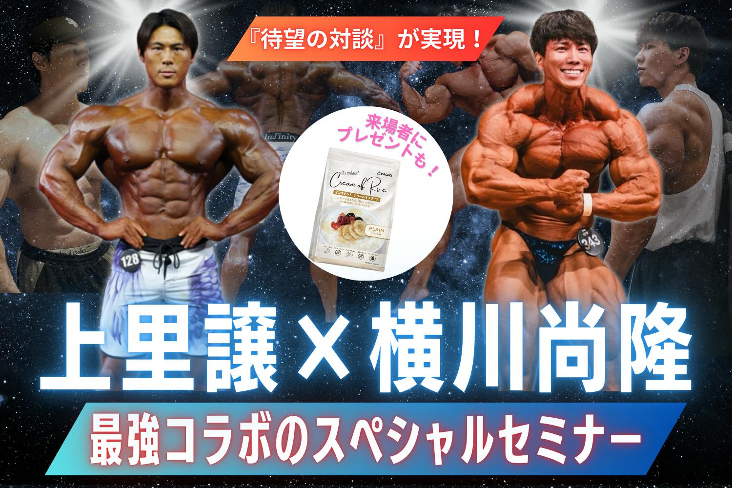 なお、ご来場いただいた方には、YAOKIクリームオブライス(プレーン味) 300gパックを提供いたします。トレーニング後や日常の食事の中で、ぜひ実際に味わってみてください。