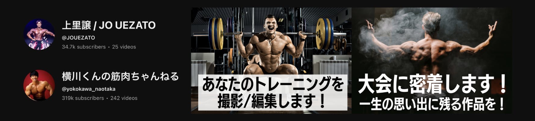 日本一のメンズフィジーク選手・上里譲、トップボディビルダー・横川尚隆の撮影・編集を手がけてきた「アナスペ」が、あなたの魅力や想いを引き出しながら、価値ある一本に仕上げます!!実際に作成したお二人の動画も下に載せております。