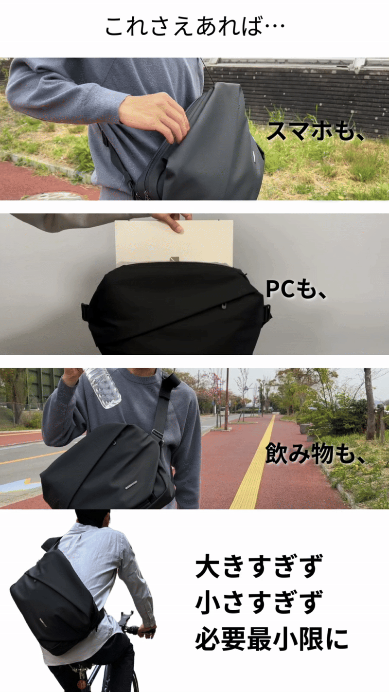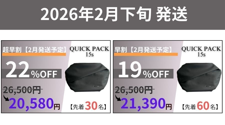 2026/03/27 12:30支援者のみなさまいつもプロジェクトの応援ありがとうございます。本日12時よりあなたのワークライフを快適にするボディバッグ「2サイズ同時の限定販売」が公開されました。【タブレット対応】QUICK PACK 11sは「大容量なコンパクトモデル」。普段タブレットや電子書籍とマイボトル程度で通勤される方に最適のサイズ。男性女性問わず“体にフィット”するサイズ感で、1,000名近い方にご愛用頂いています。一方、【A4/PC対応】QUICK PACK 15sはリュックは大きい、ショルダーでは小さい...そんなニーズに応える15インチサイズのワーカーズバッグ。ノートPCとA4の書類、充電器にマウスなど、ガジェットをまるっと持ち歩くことが多い方にピッタリ。どちらも斜め掛けでサッと掛けられ、荷物も入れやすい横長の形状。歩きや自転車での通勤にはもちろん、車や電車で荷物のつけ外しが多い方にも便利なバッグ。カジュアルすぎない、でもライトに使える。新しいバッグとフレッシュな気持ちで新年度を迎えてみませんか!?ぜひチェックしてみてください!>>【タブレット対応】QUICK PACK 11s>>【A4/PC対応】QUICK PACK 15s もっと見る
