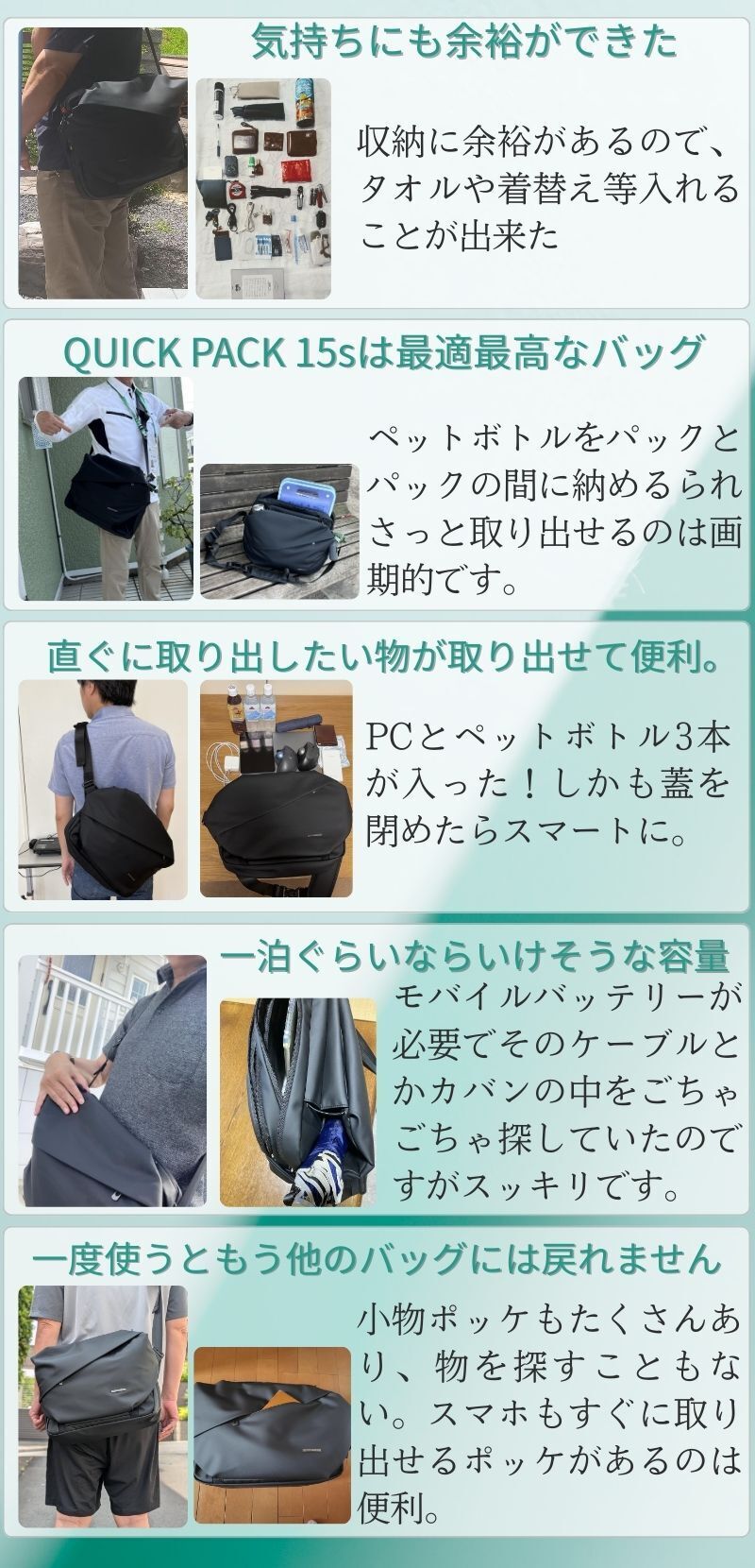 2026/04/21 12:00支援者のみなさまいつもプロジェクトの応援ありがとうございます。本日12時より35,000人のユーザーを抱える人気のQUICK PACK シリーズから、【14インチPC&A4】ジャストサイズの通勤バッグ~QUICK PACK 14s~が公開されました!仕事や何気なく使うことの多い「14型PC」や「A4書類」がピッタリサイズ️。もちろん大きいだけのバッグではなく、・取り出しやすく探さない『定位置設計』・スマホをサッと取り出せる『スマポッケ』・拡張できる『ドリンクポッケ』など、日々の生活を快適にする機能が満載!すでにお使い頂いているユーザー様からは「仕事でもパソコンを持ち歩くので重宝します」「13インチと10インチのPCを2台持ち歩くことが多く、これまでワンショルダーは諦めていましたが、このバッグなら気軽に出かけられます」と高い評価をいただいております。そんな「身軽に働く人のためのワーカーズバッグ」は・最大25%OFF 6,410円割引き・単品プランは先着80名様の数量限定・人気の「オプションセット」もご用意バッグのサイズで悩める方、身軽に気軽に通勤をしたい方、お見逃しなく!≫プロジェクトはこちら もっと見る