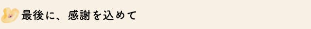 ひとつひとつのご支援、あたたかいメッセージに、心より感謝申し上げます。