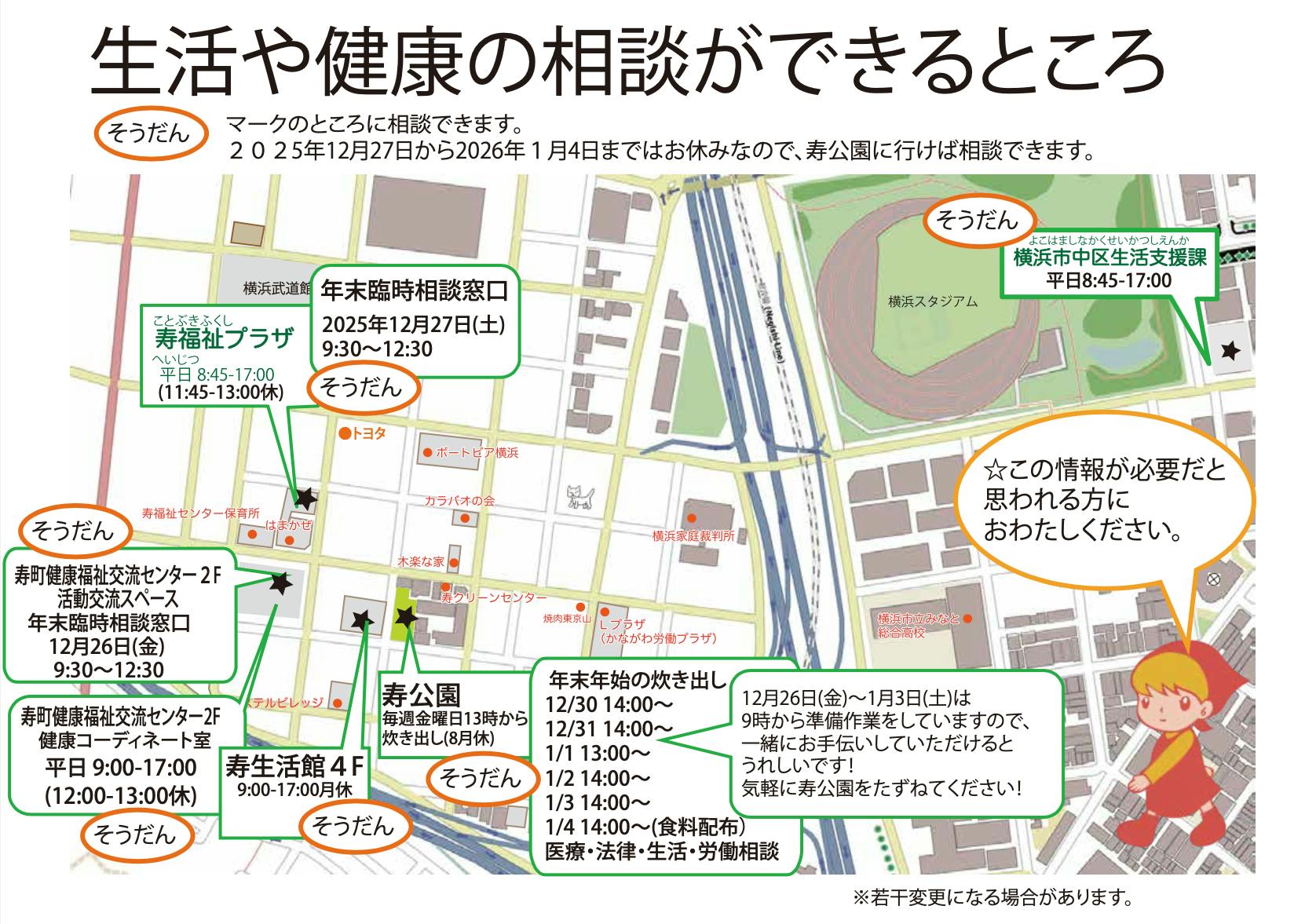 翌日25日(木)は、黄金町駅の周辺をまわってきたあと、寿町健康福祉交流センター周辺でクリスマスプレゼントをしてきました。