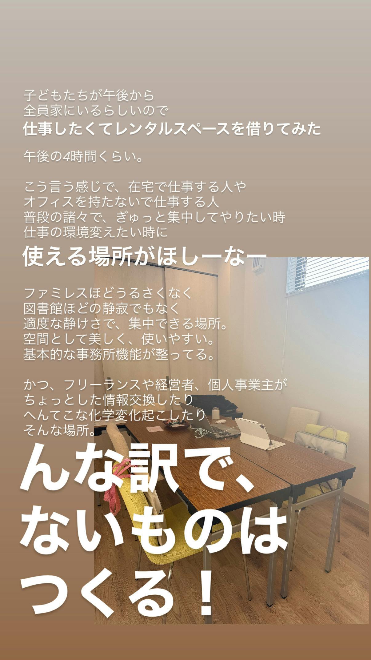 また、あえて「コワーキングスペース」にしようと思ったのには理由があります。