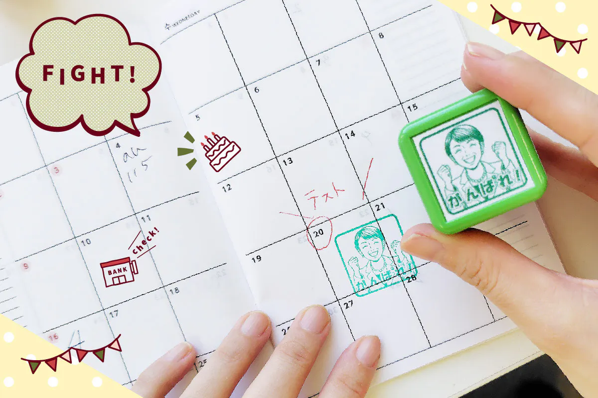 写真のように、手帳やカレンダーに「がんばれ!」をひとつ押すだけで、気持ちがすっと前に向くことがあります。
