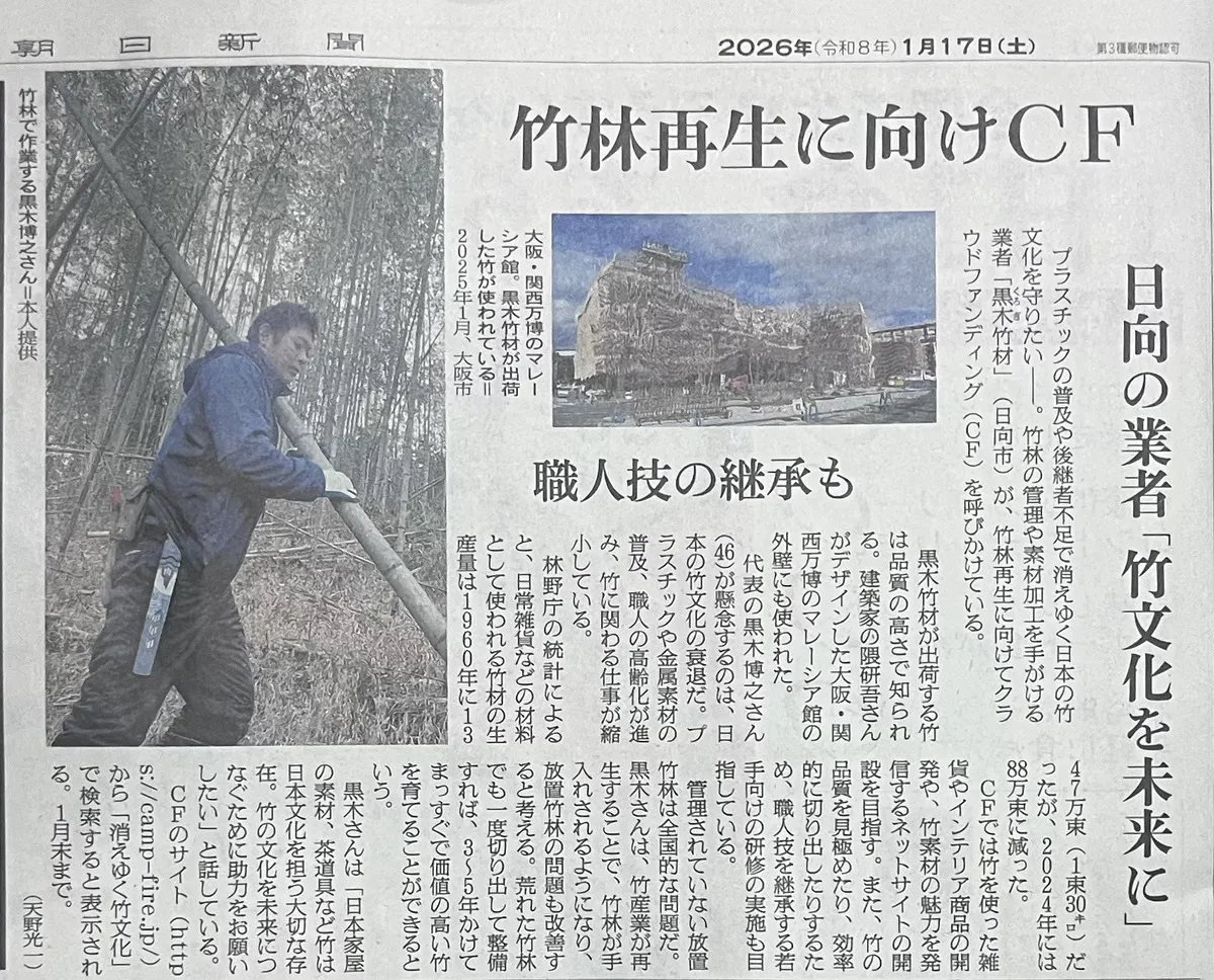 皆様、もしよろしければ、この記事の写真とともに「黒木竹材が新聞に載っていたよ!」とSNS等でシェアいただけないでしょうか。