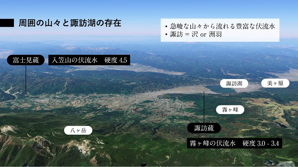 2. 理想の水 - 南アルプス山系入笠山を源とする伏流水