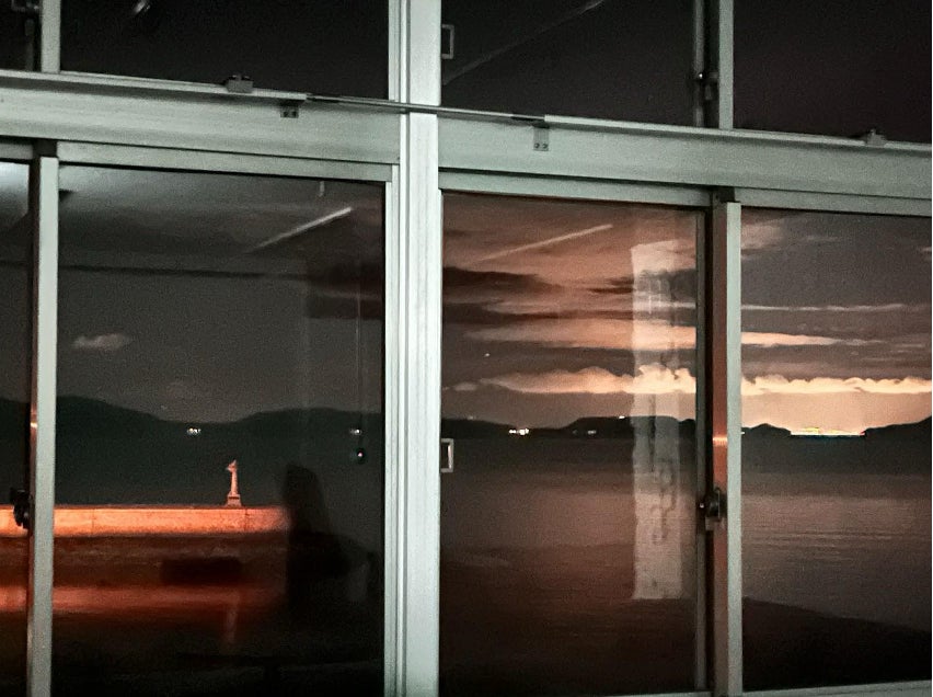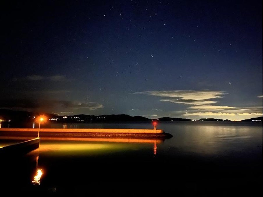 上映中はカフェのドリンクやスイーツ片手で大丈夫。映画が終わり、エンドロールが上がりきると、それまで仕切っていた四方のカーテンが上がり、お客さんは月明かりとあふれんばかりの星屑に満ちた牛窓の海に放り出されます。