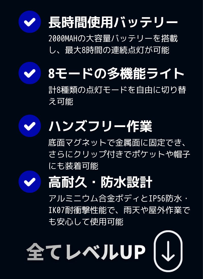 最大3000ルーメンの高光量で屋外でも室内でも一瞬で視界を切り拓きます