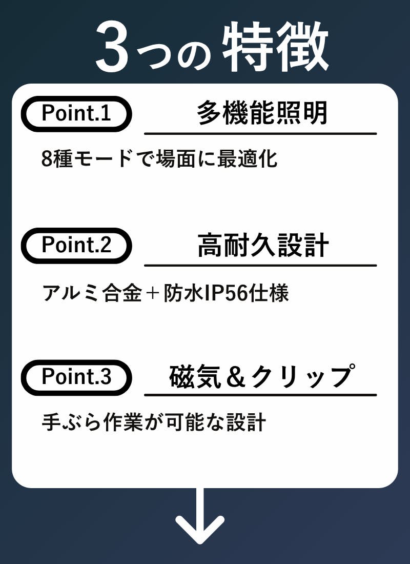 - 角度自由・・・ヘッドランプ代替の使い方も可能