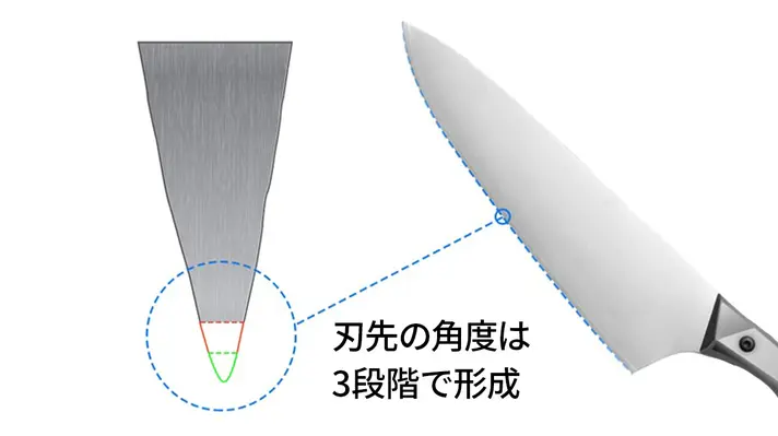 職人の研磨によって生まれる、絶妙な刃先角度。