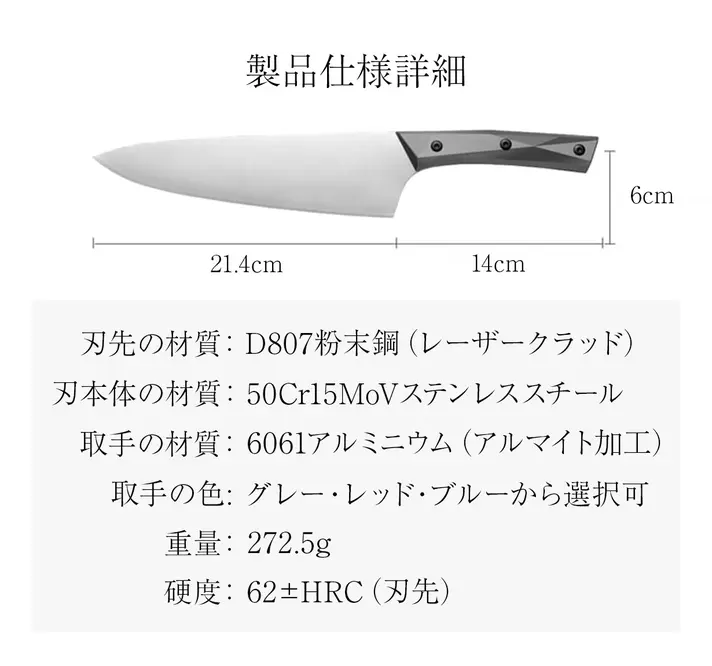 (包丁の側面のBlade等の文字は実際の製品にはありません。)