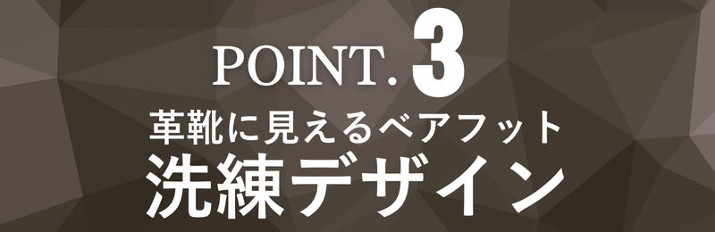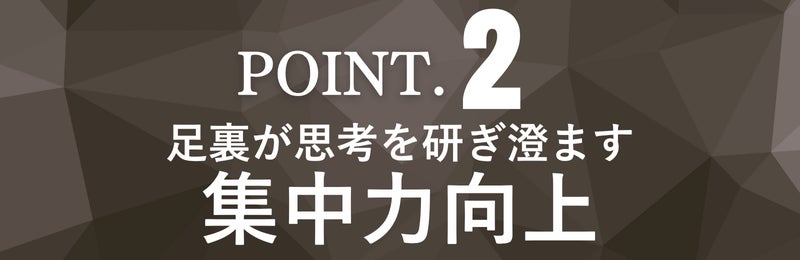 足裏には約20万個もの感覚受容体があると言われています。本製品はフラットかつ程よいクッションのソールにより、この繊細な感覚受容体への刺激を遮断せず、地面からの情報をしっかり引き出します。