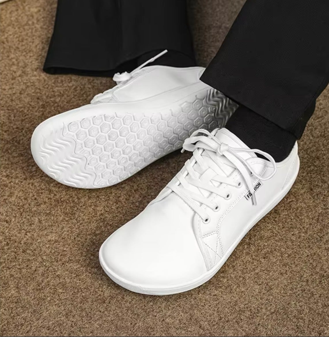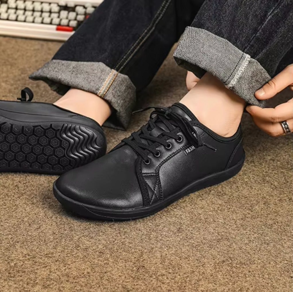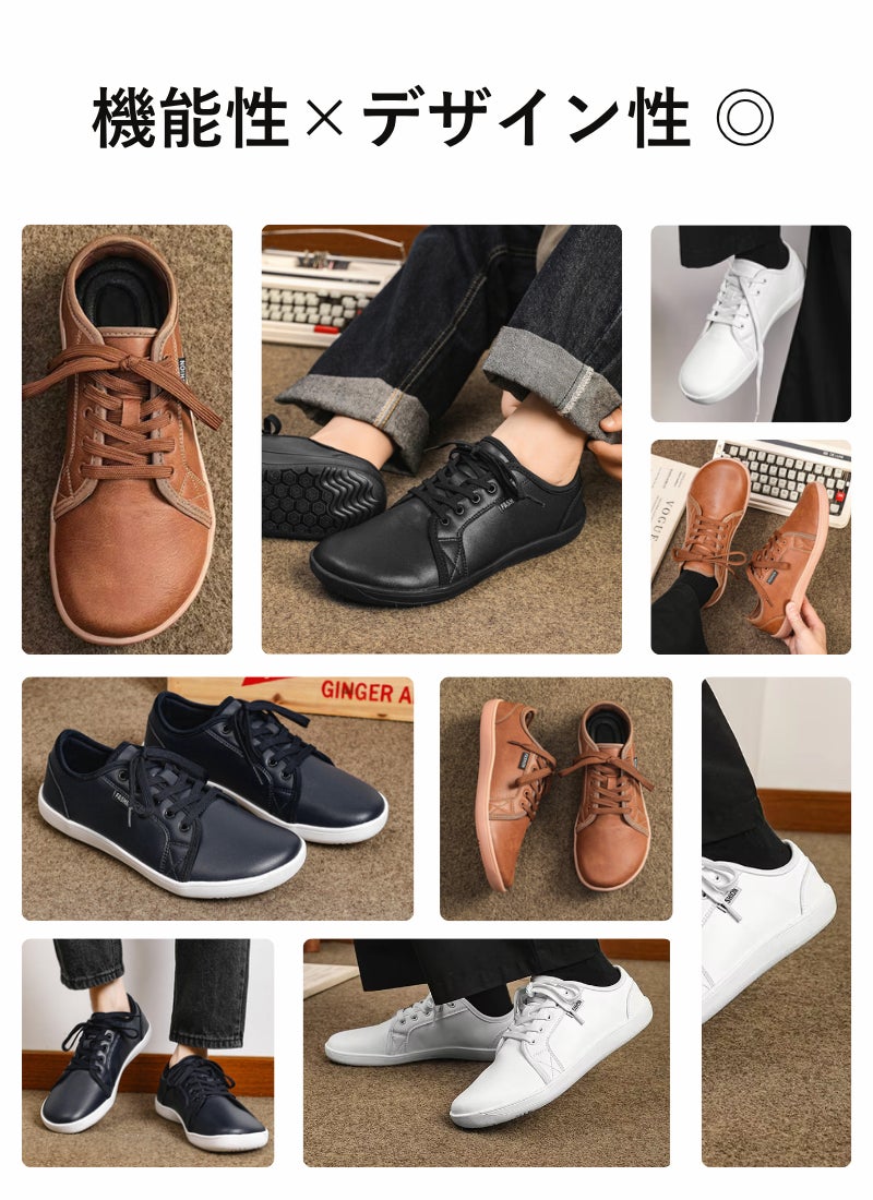 かかととつま先の高低差をなくした「ゼロドロップ構造」により、裸足に近い自然な立ち姿勢を実現します。一般的なヒール差のある靴は、無意識のうちに前傾姿勢や腰への負担を生みがちですが、本製品は足裏全体でしっかりと床を捉えることで、からだ本来のバランス感覚を呼び戻します。