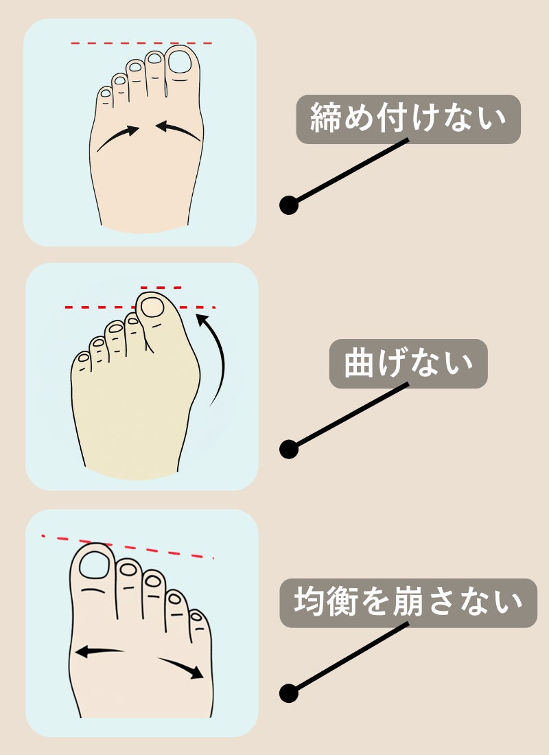 多くのビジネスシューズは見た目をスマートにするため、前足部が極端に細く、つま先の自由度が失われています。