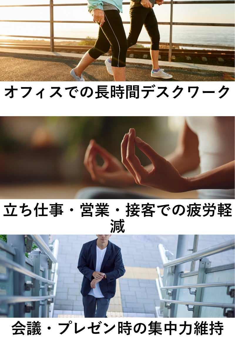 ▼立ち会議や移動が多い日でも、足裏がじんわりと守られる感覚