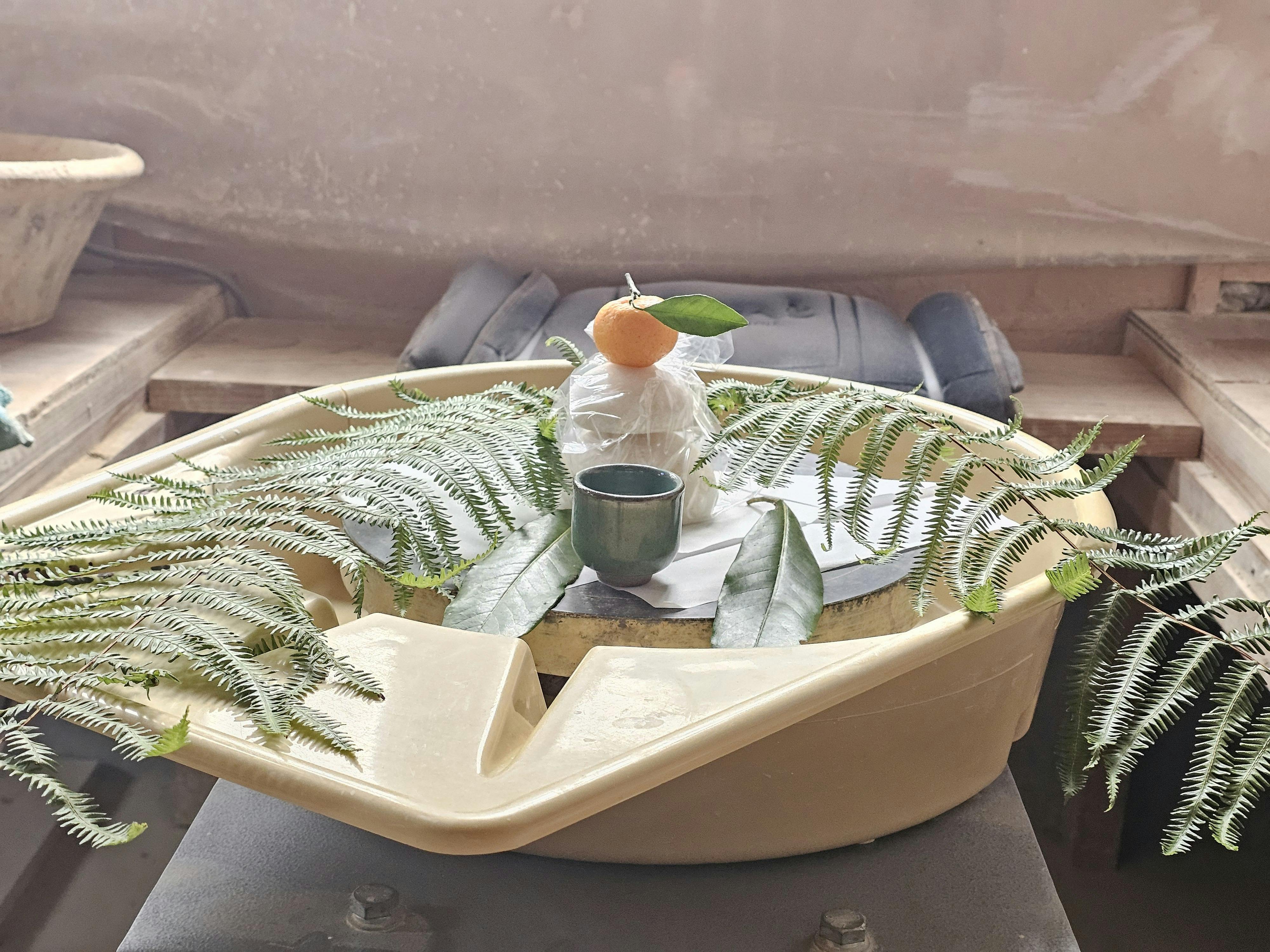 新年のやまぜん窯の風景。「ろくろ」にお神酒などをお供え。昨年を無事に過ごすことができたこと、新たな年を迎えられたことを神様へ感謝して。