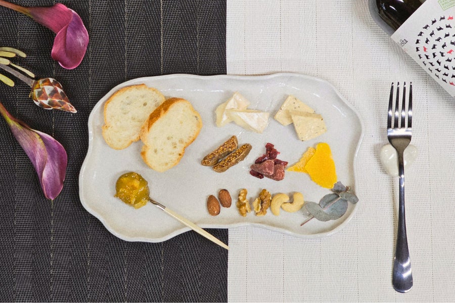 おぼんのように使用している陶板は、フラットプレートとしても使用できるので、オードブルやお刺身、フルーツの盛り合わせなどに大変便利なアイテムです。